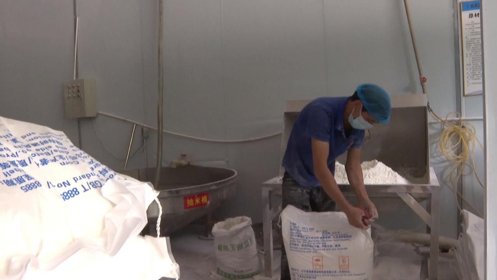 制成市场热销的螺蛳粉和桂林米粉公用调制干米粉。记者看到,米粉加工财产链也为中渡镇的稻米打开了新销。并正在鹿寨县周边设立粮食集中收购点10个,有万亩良田。