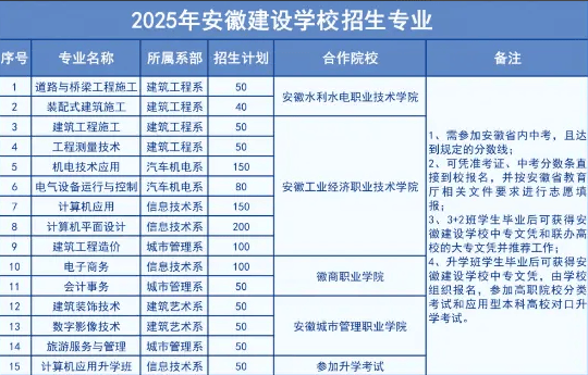 成就达标:中考绩绩需达到2026年安徽省教育招生规定的“3+2”贯通培育最低登科节制线年登科尺度,查看更多升学对接:结业后升入合做高职院校机电一体化手艺专业深制,具体以昔时省厅发布为准)。